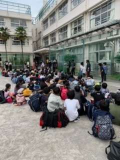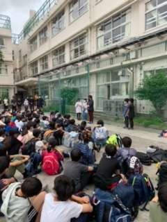 出発式。今日から川場移動教室が始まります。しっかり話を聞く姿はとても立派です。普段はできない体験をたくさんして充実した1泊2日になるでしょう。