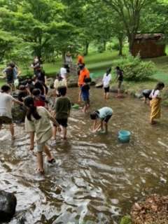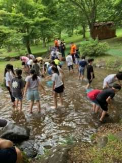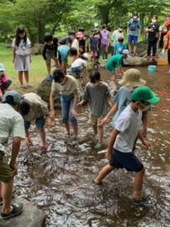 ふじやまビレッジ横の池で、マスつかみをしました。