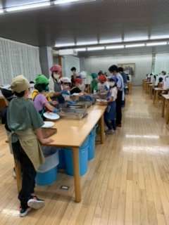朝食です。配膳、片付けもマナーを守ってしっかりやっています。美味しくいただいています。