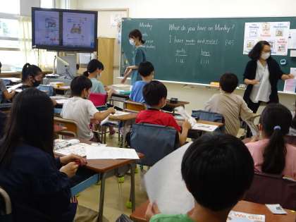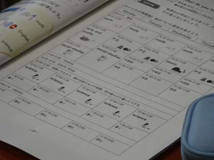 今日の表現は、What do you have on Monday? でした。時間割を伝え合いました。