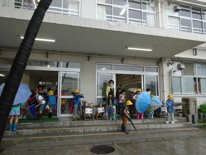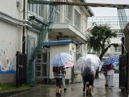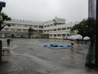 昨日、今日と雨の日です。それでも子どもたちは元気に登校。「おはようございます」の声がうれしいです。校庭がぬかるんで晴れた後にひどい状態にならないように、子どもたちは校庭の端を通って昇降口に向かいます。1年生の傘の始末もとても上手になりました。