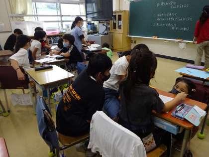 7月に入り、1学期末を迎えました。1学期の学習や生活を振り返り、自分たちの成長を祝う「お楽しみ会」を計画しています。自分の楽しみだけではなく、友達のことも考えて、計画・準備をはりきって進める姿が見られました。グループで協力し合う姿もすてきです。