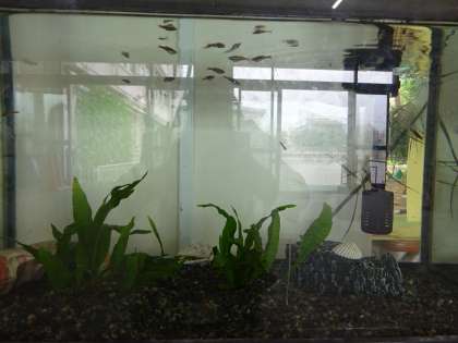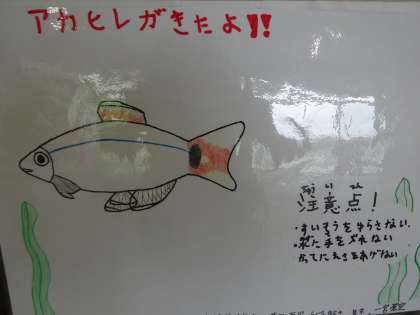 中央昇降口の水槽に「アカヒレ」という魚がやってきました。全校朝会で飼育委員会より紹介と鑑賞の注意の発表がありました。