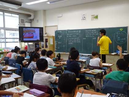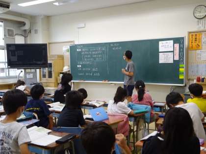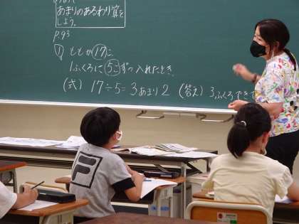 あまりのあるわり算の学習に入りました。今日は第1時間目。答えの導き方を自分なりの方法で考え、発表し合いました。
