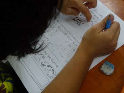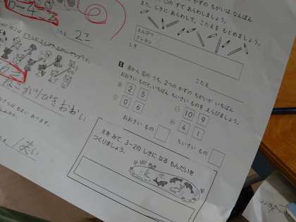 「どれだけおおい」の練習問題をたくさん解きました。自分で問題を読んで答えるプリントにも一生懸命取り組みました。