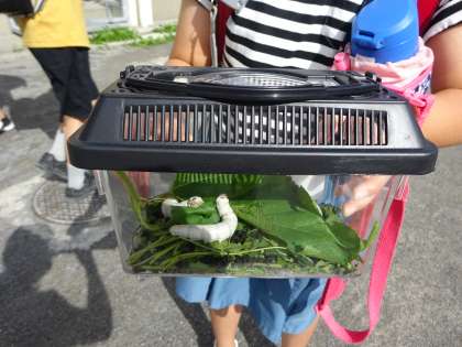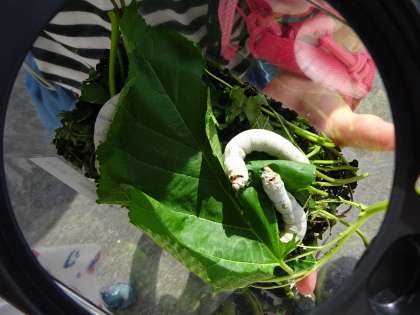 3年生はカイコを育てています。飼育する中で見つけた各自の課題を追究してきました。毎日桑の葉を与えて、ずいぶん育ってきました。