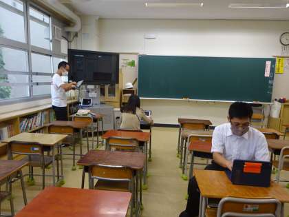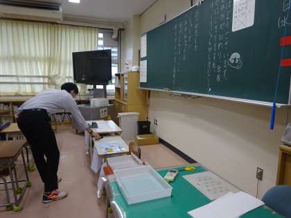 明日、9月1日は始業式です。登校してくる子どもたちを迎える準備や3日から始まる分散登校に向けての準備を進めています。