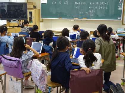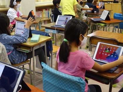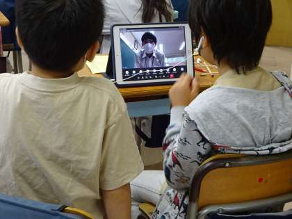 teamsを用いて、2組の担任が発信し、2年生全員が受信できるか確認しました。ロイロノートをカードを受け取ったり、配信された動画を見たりすることができました。