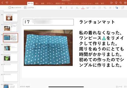 パワーポイントの使い方に慣れているので、着々と進めていました。完成が楽しみです!