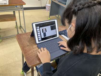 今回は夏休みの宿題で制作した家庭科の作品を紹介するスライドを1人1ページ作ります。全員が作り終わると1つのスライドが完成します。スライド作りの過程が分かるので、友達のページを参考にすることもできます。