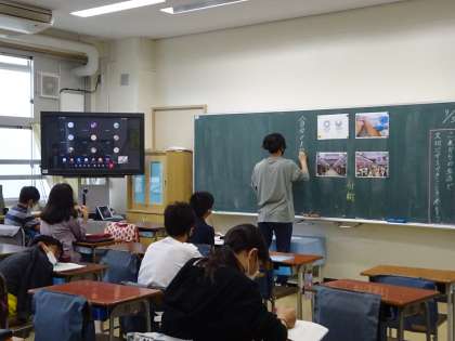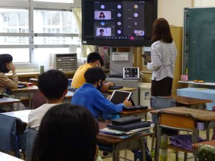 6年生の様子です。家にいる児童は、授業の様子をteamsの音声を聞きながら、ロイロノートで課題を提出するなどして学習に参加しました。