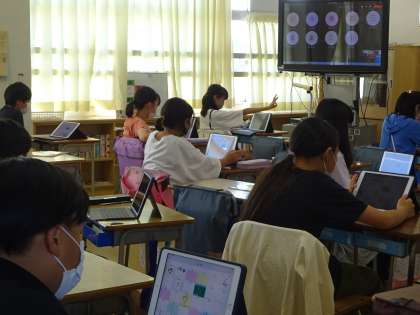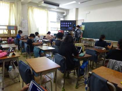 今日は6時間授業でした。6時間目の5年生は、3クラスとも「お楽しみ学活」で、自宅グループと学校組がロイロノートを使って交流しました。