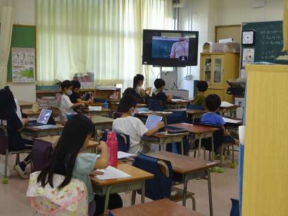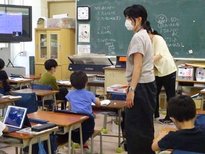 1年生の5時間目。算数ドリルや国語のプリントに取り組みました。みんなで答え合わせもしました。一日よく頑張りました。この一週間、自宅での学習も学校での学習も、慣れない環境での学習だったでしょう。ずいぶん気を張って頑張ったと思います。ご家庭でのご協力ありがとうございました。