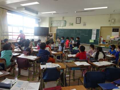 2年生は、かけざん九九の学習に入りました。上の写真は、「5の段の九九」をグループごとに唱えているところです。自信いっぱい、やる気満々で取り組んでいます。