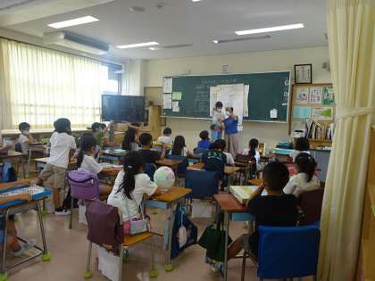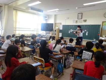 2年生は、夏休みの学習で自由研究に取り組みました。下の写真は友達へ自分の自由研究を紹介しているところです。みんな興味をもって聴くことができました。
