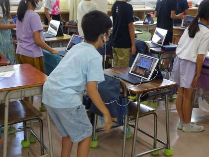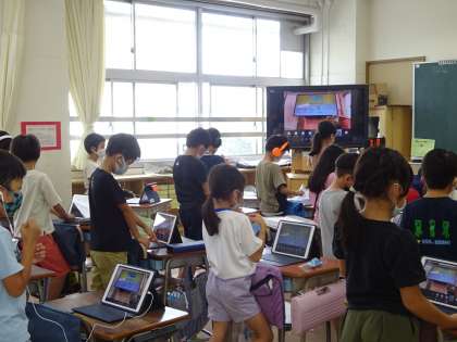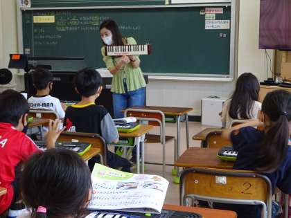 今日の2年生の音楽では、音楽専科が音楽室で授業をし、その内容を他の2年生のクラスに配信して学習を進めました。まずは、2拍子を感じてリズム打ち。配信された画像を見ながら、リズム打ちを楽しみました。もう一つの課題は、「トルコ行進曲」の1段目を演奏できるようにすること。「指またぎ」に気を付けながら練習をしました。