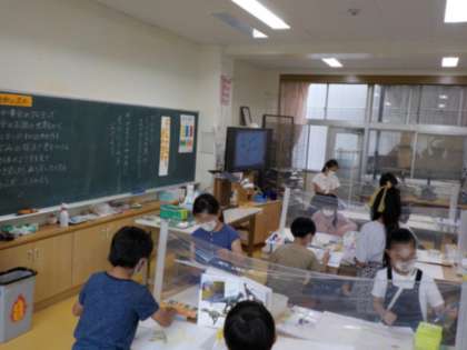 分散登校の時は、小さな画用紙を配布して、オンラインで一緒に活動しました。