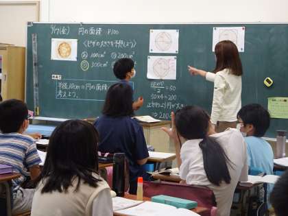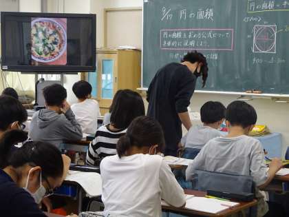 6年生の算数です。今日から「円の面積」の学習に入りました。円の面積の求め方を考えました。