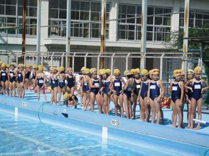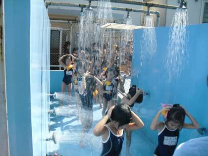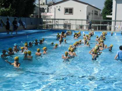 1.2年生の水泳の学習が今日で終わります。お天気にも恵まれ今シーズン最後の水泳を楽しみました。冷たいシャワーとも来年まで「さようなら」です。