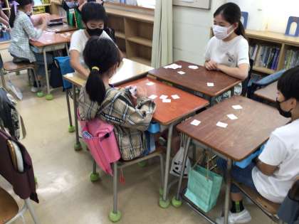 4年生の外国語活動では、アルファベットについて学習しています。アルファベットの発音と小文字の形のついて学習をしました。繰り返し練習をしたり、ゲームを通して慣れ親しんだりして楽しみました。
