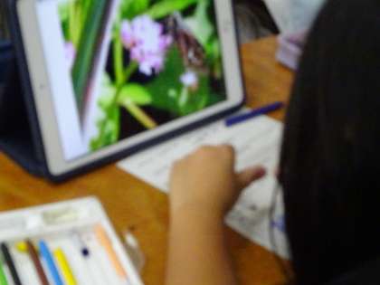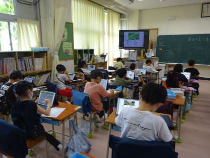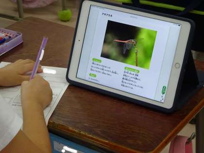 1年生の生活科で「秋の虫」を探します。今日は、iPadで調べ、ワークシートにまとめました。「夏の虫」でも調べていたので、先生からの説明が少なくても、どんどん調べてまとめていく子どもたちでした。