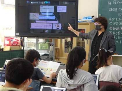 5年生の社会科です。水産業の課題に対する解決方法やこれからの水産業の発展に必要なことを調べたり、解決のためのアイディアを考えたりしました。得られた情報や自分たちのアイディアを根拠を明確にして整理しまとめ、次回はプレゼ大会をします。ピラミッドチャート、キャンディチャート、フィッシュボーン図も活用しました。ロイロノートを活用し、しっかりと学習を積み上げています。