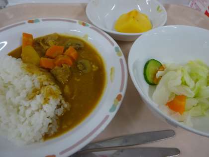 本日の献立 カレーライス 牛乳 ひとしお野菜 柿