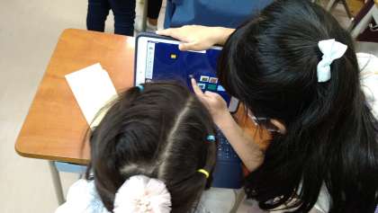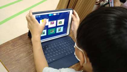 「この白いあさがお、すごいかわいいでしょ?夏休みに1回枯れちゃったんだけど、またお花が咲いてくれて嬉しかった。白いあさがおはレアで、かわいいんだよ。」と、嬉しそうに教えてくれました。写真を見ることで「自分のあさがお」として愛しい気持ちがいつまでも続くんだな〜と、iPad活用の良いところを教えてもらいました!