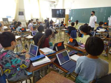 4年生の国語です。「ごんはどのようなきつねなのか」それぞれが、自分の考えをまとめました。友達との意見交流では、どの場面やどのような言動等からそのようなことが言えるのか、根拠をもとに活発に話し合う子どもの姿が見られました。