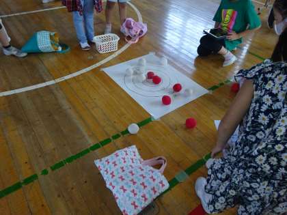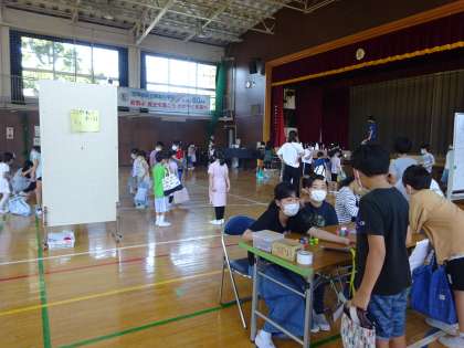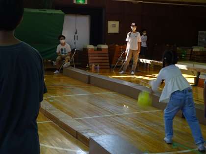 体育館では、5年生が「集まれ 縁日の店」、6年生が「まとあて」のお店を出しました。