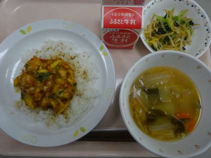 本日の献立 かきあげ丼 牛乳 みそ汁 おひたし