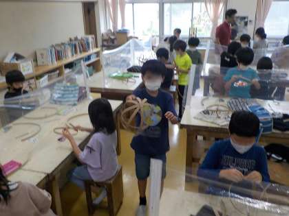 「できたよー!」と「ほんとにまるくなった!」「なんだかかごみたい」