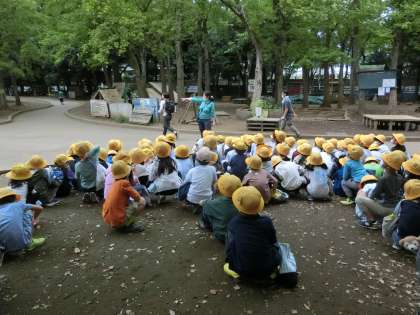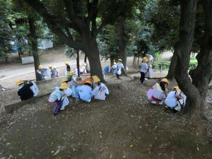 今日は、世田谷公園へ秋探しに行ってきました。一年生にとっては初めての校外学習です。道の歩き方にも気をつけました。