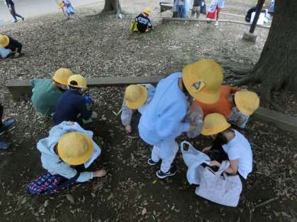 「こっちにたくさんどんぐりが落ちているよ。」と声を掛け合いながら楽しそうに活動していました。