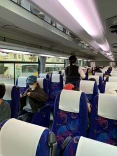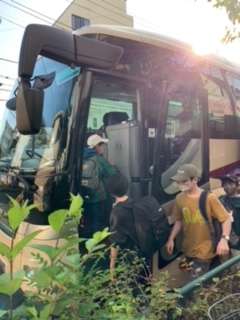 バスに乗り込み出発しました。感染症対策で、バスは3台で出かけます。