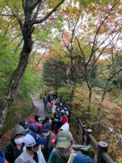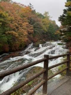 華厳の滝の後は、竜頭の滝へ。小雨ですが、紅葉がきれいです。