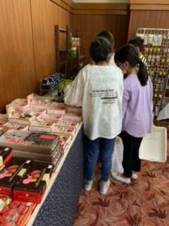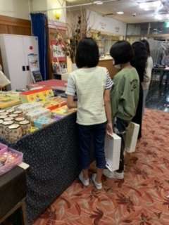 17時からお風呂タイムです。密を避けるため、男子は3グループのローテーション、女子は2グループのローテーションで入浴します。お風呂タイムではないグループの人たちは、順番にお土産購入タイムです。自分の欲しいものの他に、家族やいろいろな人の顔を思い浮かべながら購入しています。