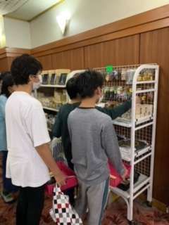 どれがいいかな?友達とも情報交換したり、計算したりしながら購入しています。明日また購入するために、お金の使い方も考えているようです。