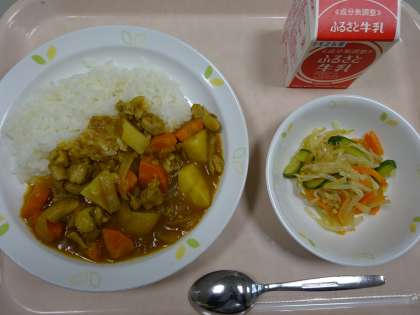 本日の献立 チキンカレーライス 牛乳 和風サラダ