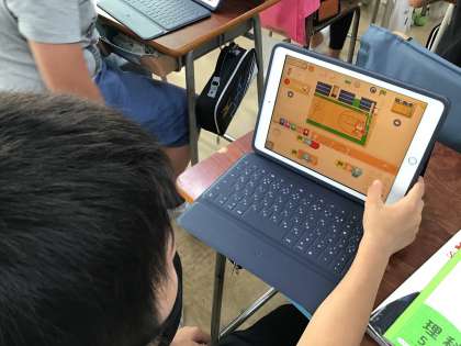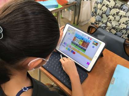 学校のiPadに「スクラッチJr.」のアプリが入っています。