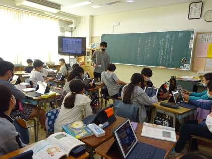 5年生の国語科では、互いの立場を明確にして話し合う学習を進めています。学校生活の中から議題を決め、議題に対してどのような考えをもっているか、議題に関わる現状と問題点を挙げ、それに対する自分の考えを書きだしていきました。今後は、計画の沿って、グループで話し合っていきます。考えを広げる話合いの仕方を学んでいきます。