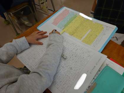 1年生の国語科「書くこと」の学習です。おうちの人に知らせたい「楽器」を手に取ってじっくり調べました。見つけたことを文章に書いていきます。
