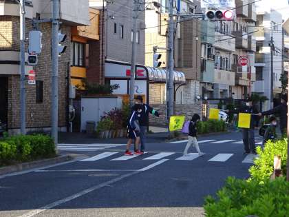 今日は、土曜授業日でした。土曜授業の日の朝は、本校おやじの会「繋組」の方々も子どもたちの交通安全を見守ってくださっています。