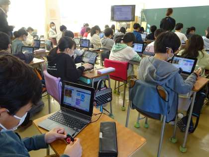 東京都の取組に応募したところ、昨年度に引き続き「プログラミング」の学習に選ばれました。残念ながら5年生の一クラスですが、ここでの学びを学校に広げていってくれることと思います。