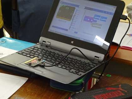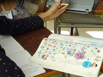 5年生の国語です。都道府県の漢字を使って文章を書き、すごろくを完成させ、遊びを取り入れながら正しい漢字を書けることをめあてに学習を進めました。その際、プログラミング(ビスケット)でサイコロを作りました。主体的・協働的に学べるように、友達と文章の共同推敲をしたり、プログラミングの手順を考えたりする学習活動も取り入れました。