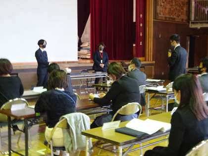 金曜日に教育委員会の先生方5名が訪問されました。3時間目から5時間目まで全学級をご覧になりました。5時間目終了後は、本日の授業について教職員で協議し、その後指導主事の先生方からご指導をいただきました。