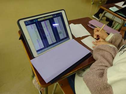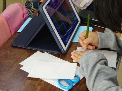 写真は、組み立てを考えた後、組み立てに沿って説明する文章を書いているところです。