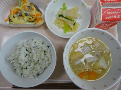 本日の献立 わかめごはん 牛乳 魚のみそマヨネーズ焼き 呉汁