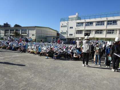 地震を想定した避難訓練が行なわれました。おしゃべりもなく、しっかりと避難ができました。地震はいつ起きるか分かりません。だからこそ、「地震が起きたらどうするか」を考えておくことが大事です。学校にいるときに起きるとも限りません。登下校中なら?家の中では?自分ができることを考えさせたいです。