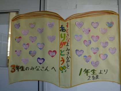 1年生は、3年生の読み聞かせをとても楽しんでくれたようです。お礼のカードが3年生に届きました。